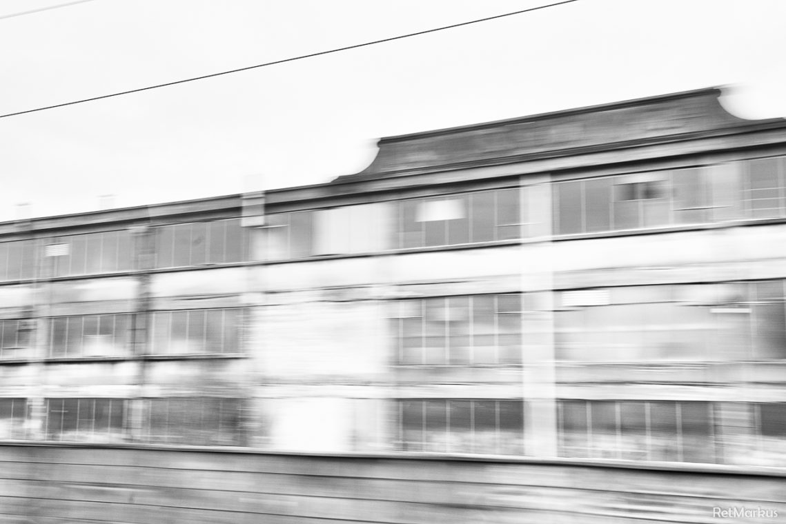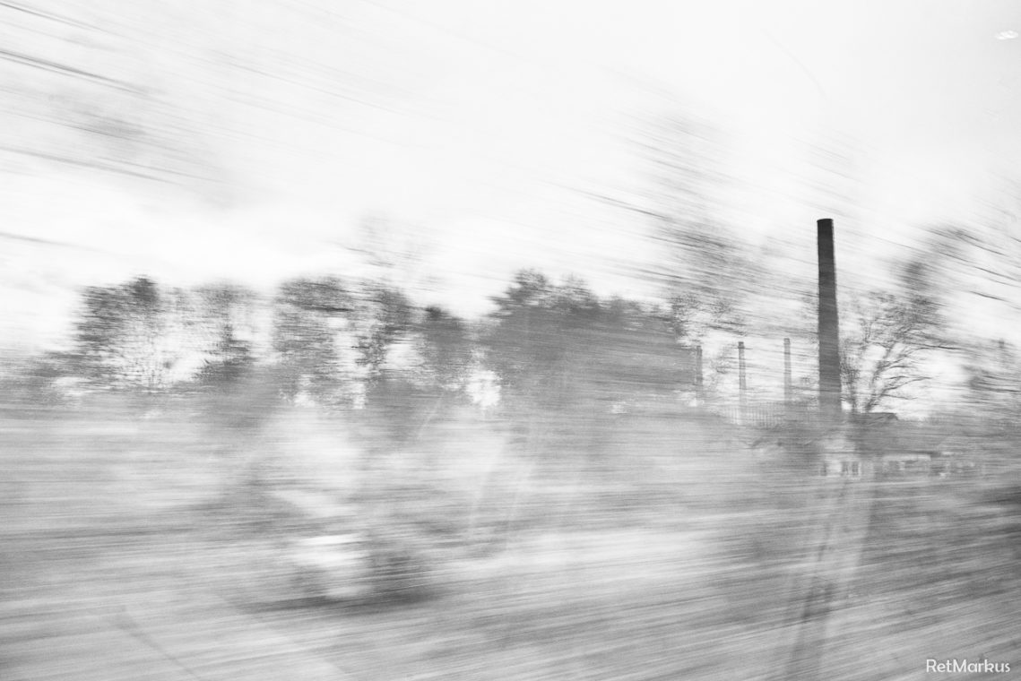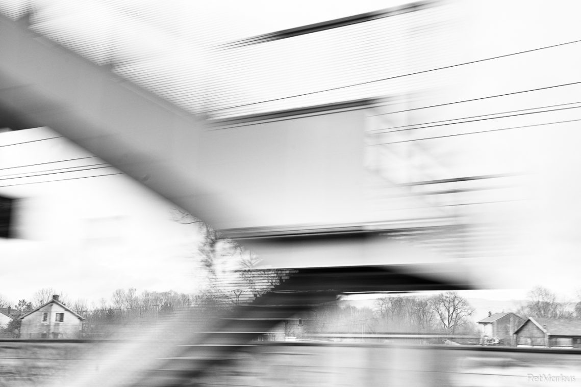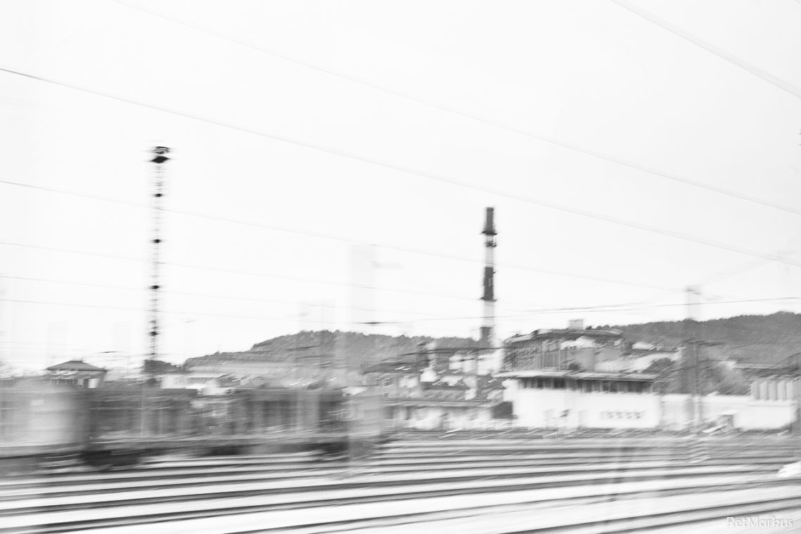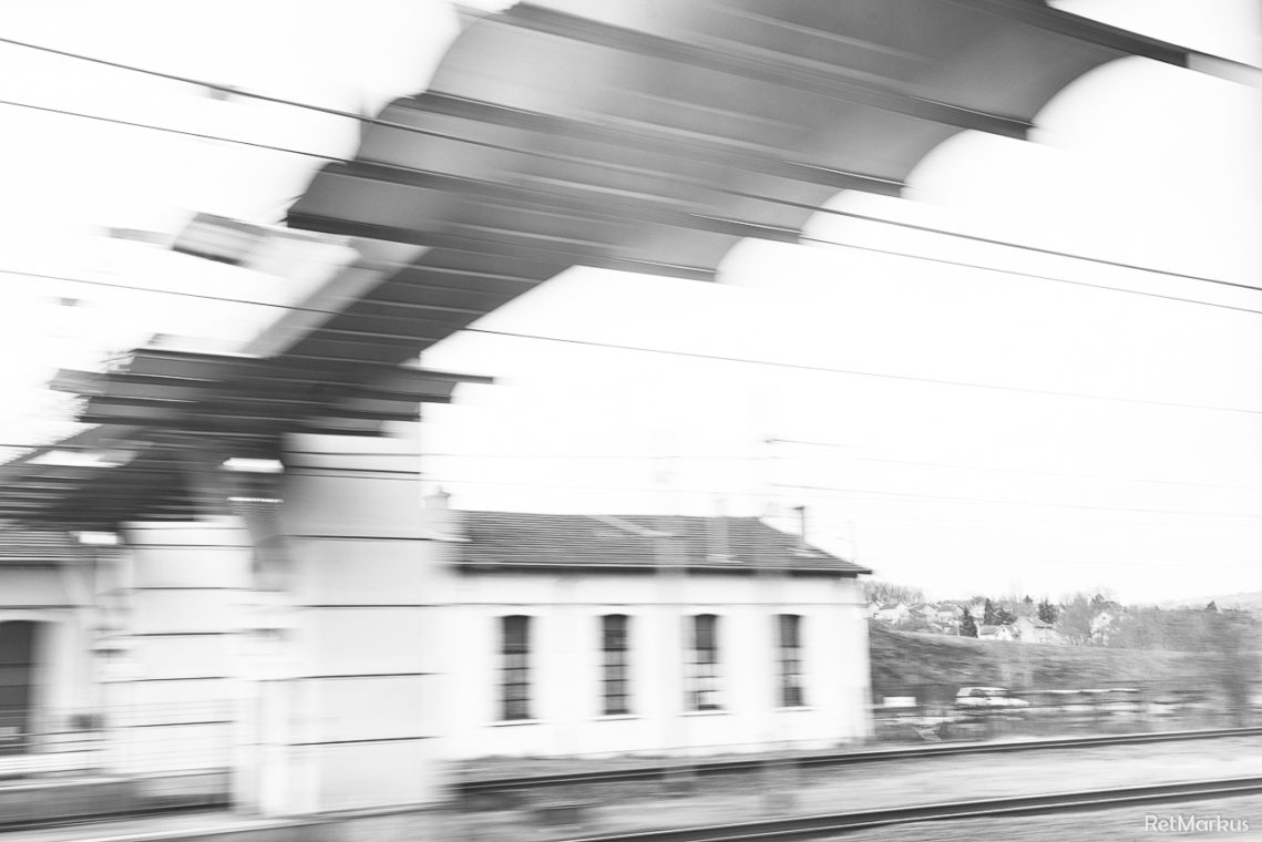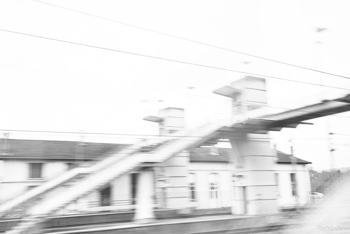 Le défilement produit vient ainsi attester du déplacement et de la vitesse, il les manifeste même. On entre alors en vibration avec William Mallord Turner (peintre anglais – 1775-1851) et sa pratique de l’imperfection décisive. Et comme lui, par l’artefact du moins bien voir, on en dit plus. Le regardeur, la regardeuse, en s’attardant sur l’image floue va faire un effort et se placer de fait dans un jeu entre son imaginaire, ses propres repères, ses propres références, sa mémoire, ses souvenirs… Chacun peut recomposer et juxtaposer les traces qui s’enchaînent et qui font sens pour soi, les différents mondes et les énergies qui se côtoient ou qui sont en concurrence (paysage ; chemin de fer ; route ; voie fluviale ; passagers, halls de gare, etc.).